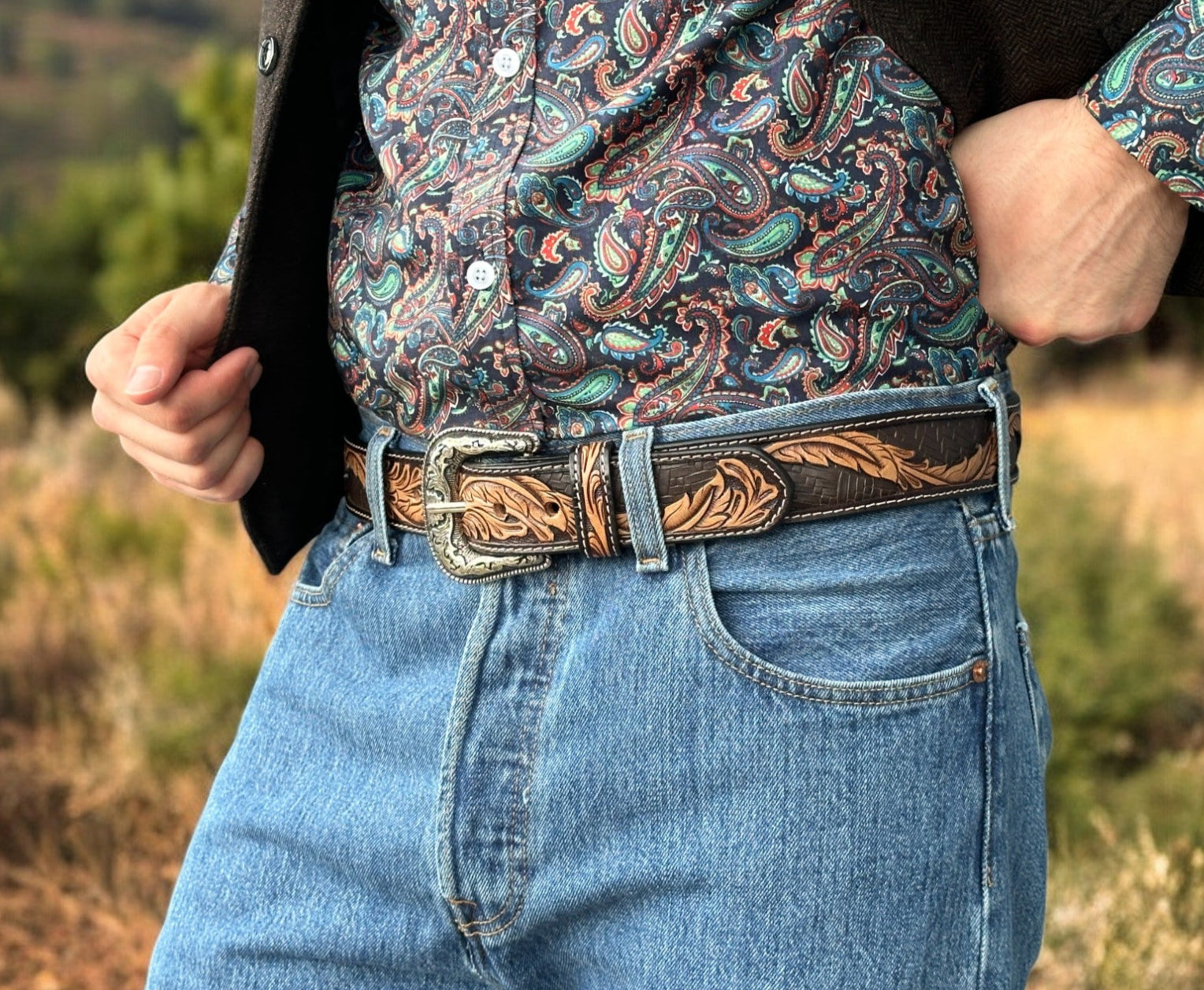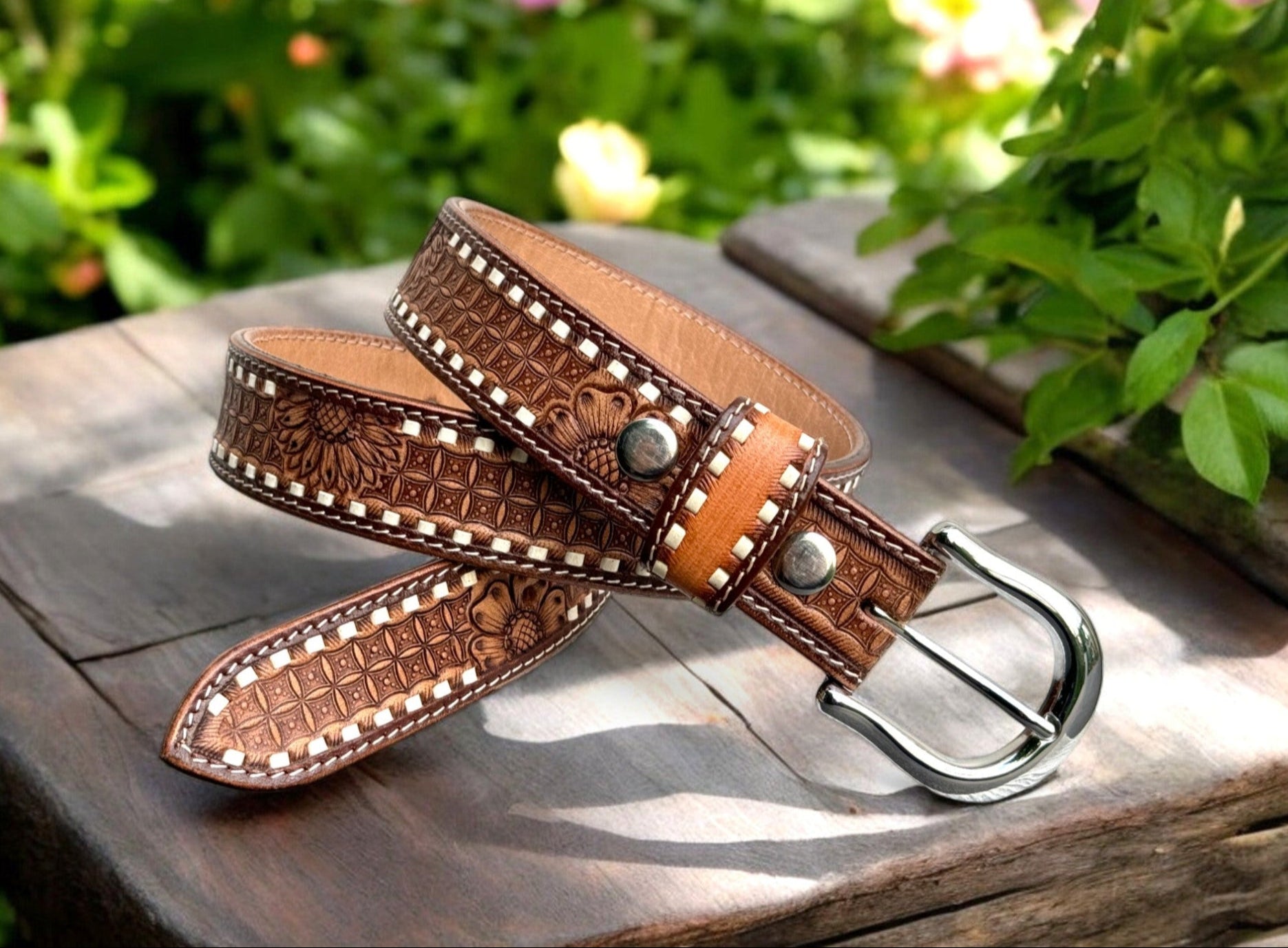 Western Leather Belt Cowboy Floral Belt 1.5" Wide Leather Belt with BuckleWestern Leather Belt Cowboy Floral Belt 1.5" Wide Leather Belt with Buckle