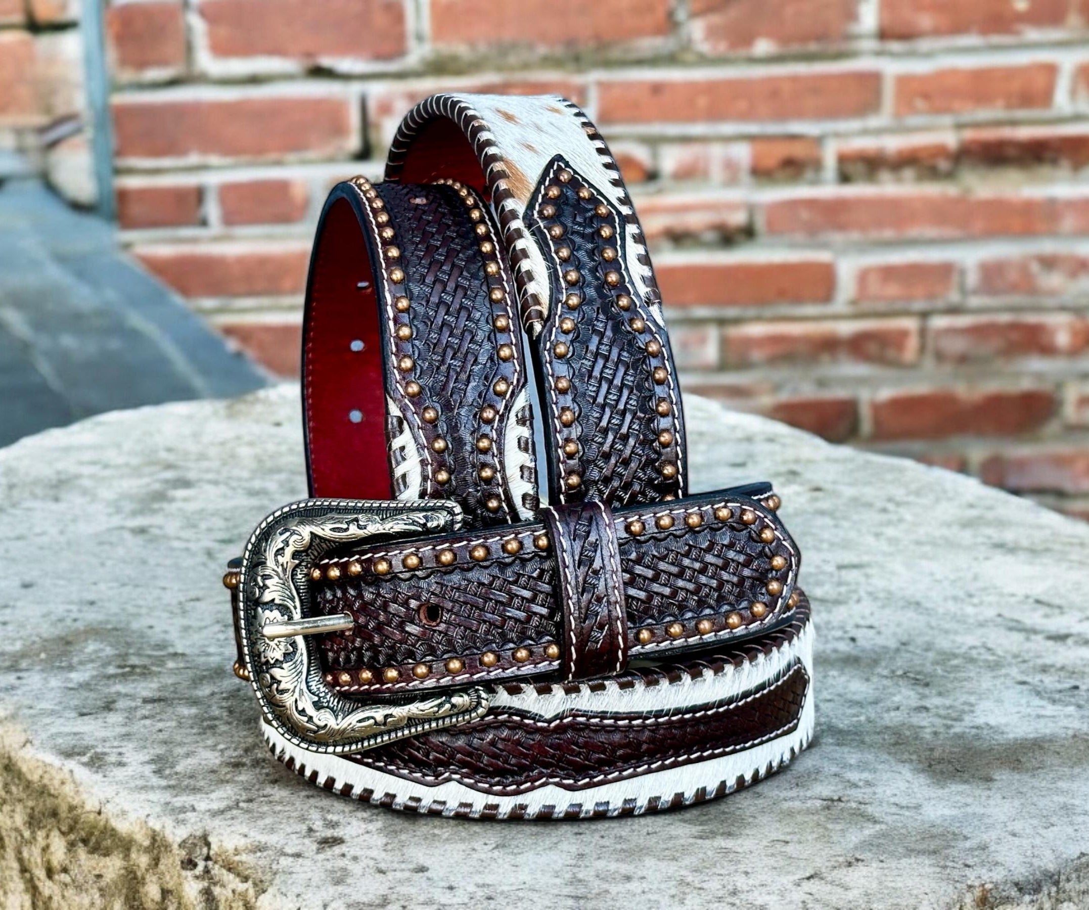 Western Cowboy Leather Belt Cowhide Leather & Fur Western Tooled Belt For Men WomenWestern Cowboy Leather Belt Cowhide Leather & Fur Western Tooled Belt For Men Women